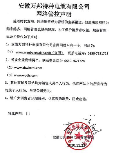 鄭重聲明:安徽萬邦特種電纜有限公司官方網站為:www_wanbangcable_com.zyytsm.com,除此之外無任何子網站或合作網站,其余均為假冒偽劣。電話:0550-7621728 13485756353 地 址:安徽省天長市滁州高新技術產業開發區經四路29號